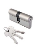 Produkt wykonany z mosiądzu pokrytego niklem, dzięki czemu jest odporny na zniszczenia, nie zacina się, nie śniedzieje, a kolor niklu (szary) sprawia, że dobrze komponuje się z większością okuć, nie zaburzając estetyki- dla perfekcjonistów wśród klientów. Estetycznie zaczesana powierzchnia wkładki elegancko prezentuje się w Waszych klamkach i drzwiach. Wkładka bębenkowa może być zamontowana jako zabezpieczenie do różnych drzwi, np. piwnicy, komórki czy też schowka w domu. Dzięki temu wiesz, że nikt niepożądany nie będzie mógł się dostać do Twoich cennych przedmiotów.