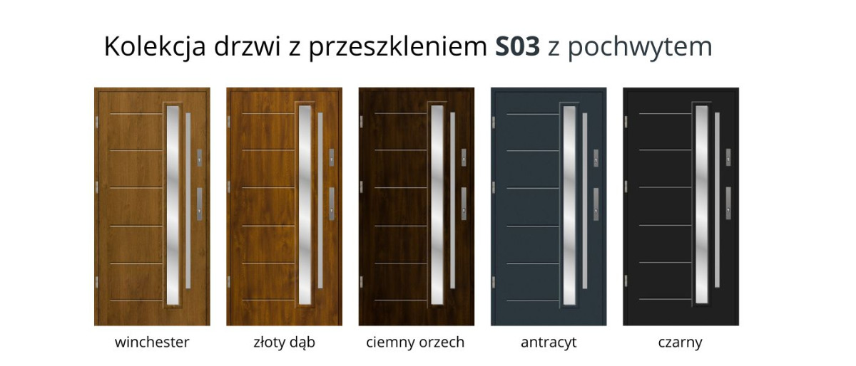 Nowoczesny design: Oferujemy drzwi wejściowe w wielu wzorach i kolorach, w tym: biały struktura, dąb bielony, winchester, złoty dąb, ciemny orzech, antracyt struktura, dąb turner, a także kolory RAL (np. baby blue, miętowy, pomarańczowy, różowy).