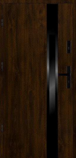 Kompletny zestaw: Drzwi zewnętrzne w komplecie z ościeżnicą stalowo-drewnianą, gotowe do montażu.
