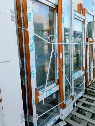 Okno PCV Veka 82 mm trzyszybowe obustronny złoty dąb, dostępne od ręki