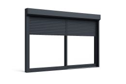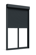 Drzwi przesuwne HS PCV Veka ciemnoszare jedwab 1820x2270 mm lewe + roleta zewnętrzna elektryczna