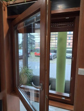 Okno PCV premium 82 mm 1165x1380 mm rozwierno-uchylne złoty dąb dwuszybowe VEKA + roleta zewnętrzna RMK z moskitierą