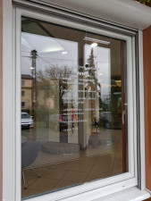 Drzwi przesuwne HS PCV Veka ciemnoszare jedwab 3220x2260 mm lewe + roleta zewnętrzna elektryczna