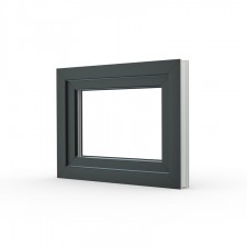 Okno PCV standard 865 x 535 mm uchylne antracyt struktura drewna dwuszybowe VEKA