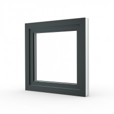 Okno PCV standard 865 x 835 mm uchylne antracyt struktura drewna dwuszybowe VEKA