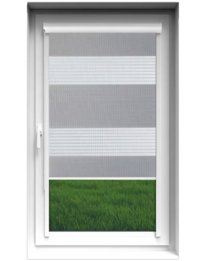 Roleta Dzień Noc w kasecie z aluminium to bardzo funkcjonalne i estetyczne oraz trwałe rozwiązanie. Paski tkaniny mozna ustawić w różnej konfiguracji, co pozwala na regulowanie dopływu światła. Prowadnice sprawiają, że okno jest szczelnie zasłonięte po bokach – nie powstają prześwity. Materiał po zwinięciu w kasecie jest chroniony przed kurzem i zabrudzeniami.