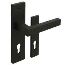 Klamka do drzwi + szyld głowny do pochwytu jednostronnego FrontLine Warsaw 50 mm F9005 / czarna szyld prostokątny rozstaw 92 mm