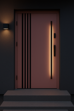 Drzwi zewnętrzne Stal PREMIUM+ 72 różowe 100 cm lamele + antaba pochwyt z podświetleniem led