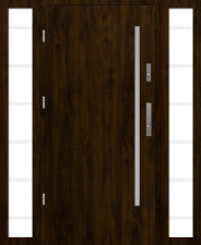 Drzwi zewnętrzne z dostawkami PREMIUM+ 72 gładkie szyba piaskowana z paskami przezroczystymi 90 cm ciemny orzech